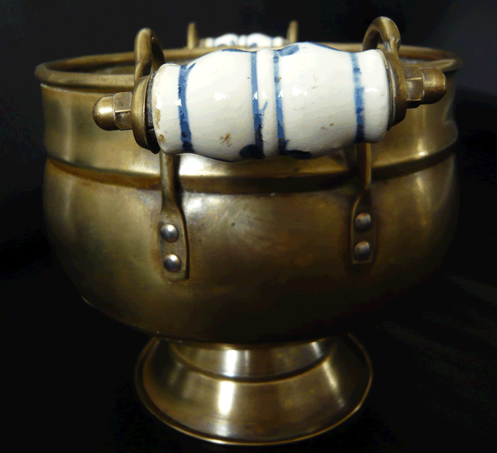 Die Jardinière hat eine Breite von ca. 36 cm und eine Höhe von ca. 21 cm. Die Bemalung wirkt je nach Lichteinfall lüstrierend / irisierend. Die Schale hat keine Beschädigungen nur kleinere Gebrauchsspuren. Es sind mehrere Ziffern als Pressmarken am Stand vorhanden, die aber schlecht lesbar sind. - Statt 199€ nur 129€