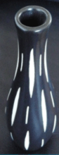 Die schlanke Vase ist ca. 18 cm hoch und hat einen Durchmesser an der breitesten Stelle von ca. 6,5 cm.
